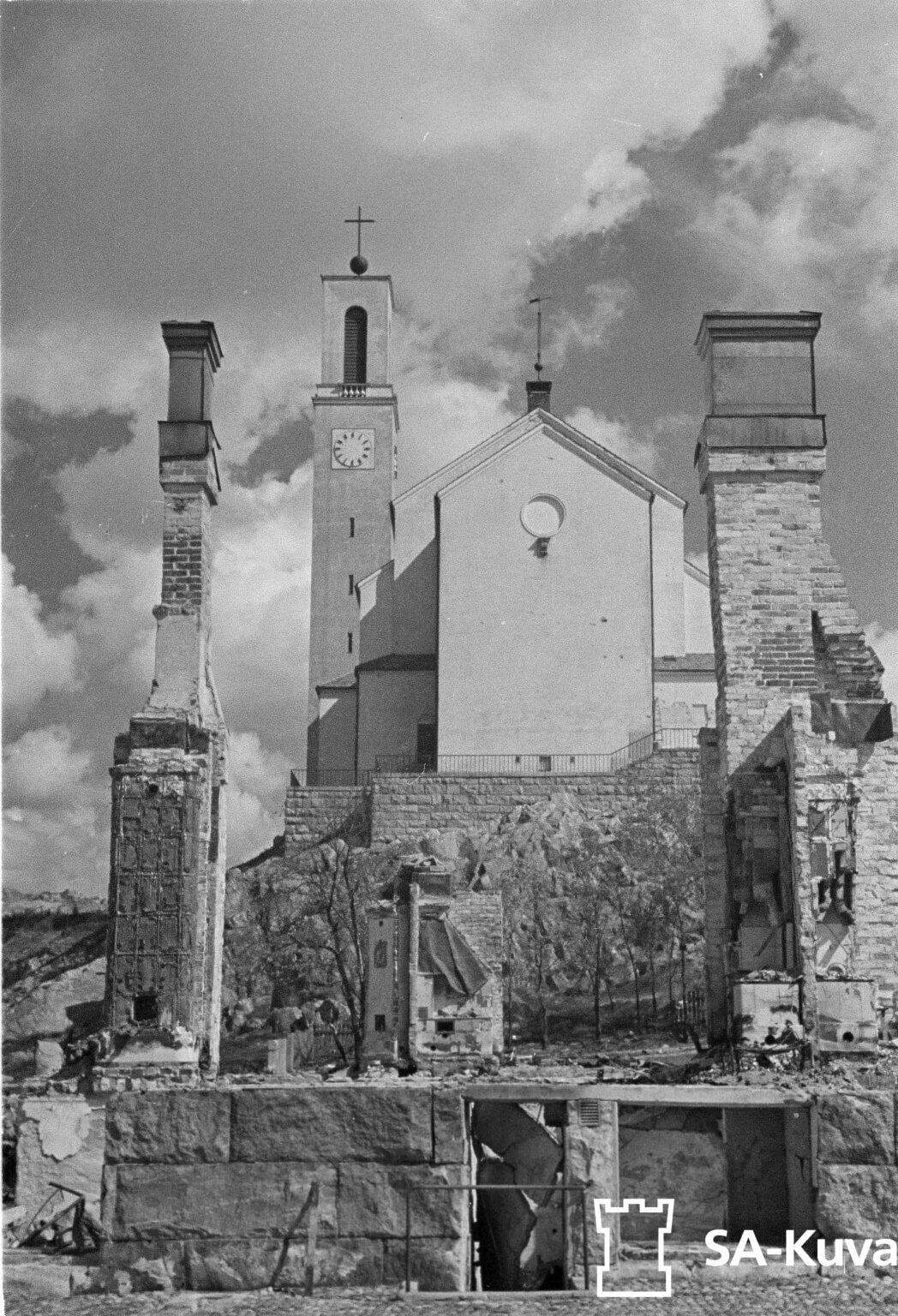 Ei mitään, koska säleverhot ovat tiukasti kiinni. Valoisalla harvaa männikköä ja sen takana naapurikerrostalo.
