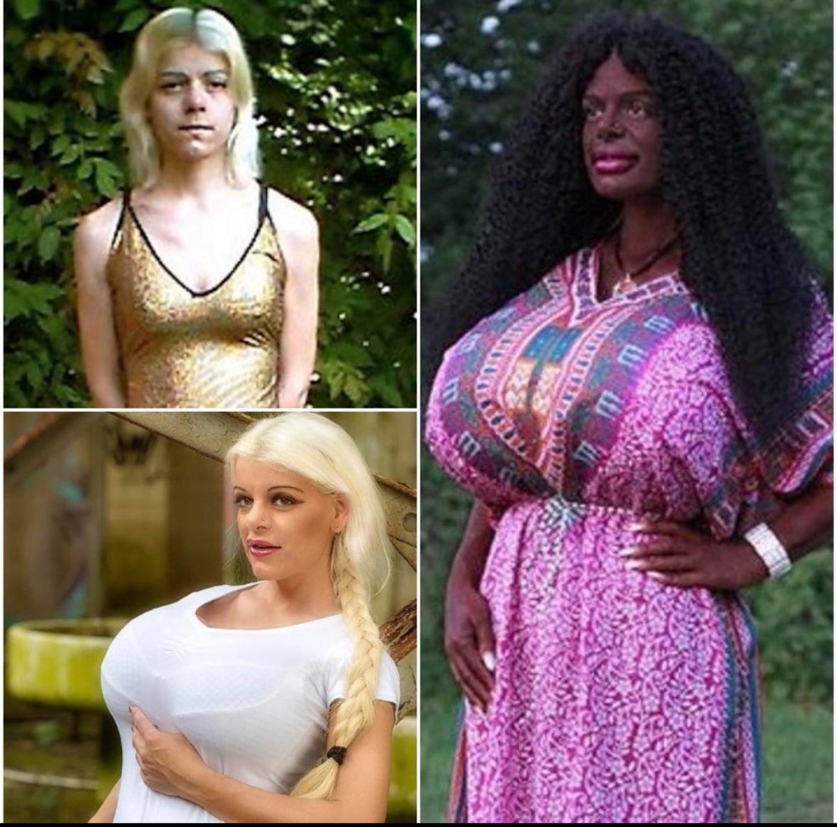 Tuolle laitettiin jotain kyseenalaisia, laittomia ihon tummennuspiikkejä, silmien väri vaihtui myös tummiksi. Rinnat ja huulet täytettiin, hiukset värjättiin mustiksi ja laitettiin jatkeita. Menee ihan täydestä.