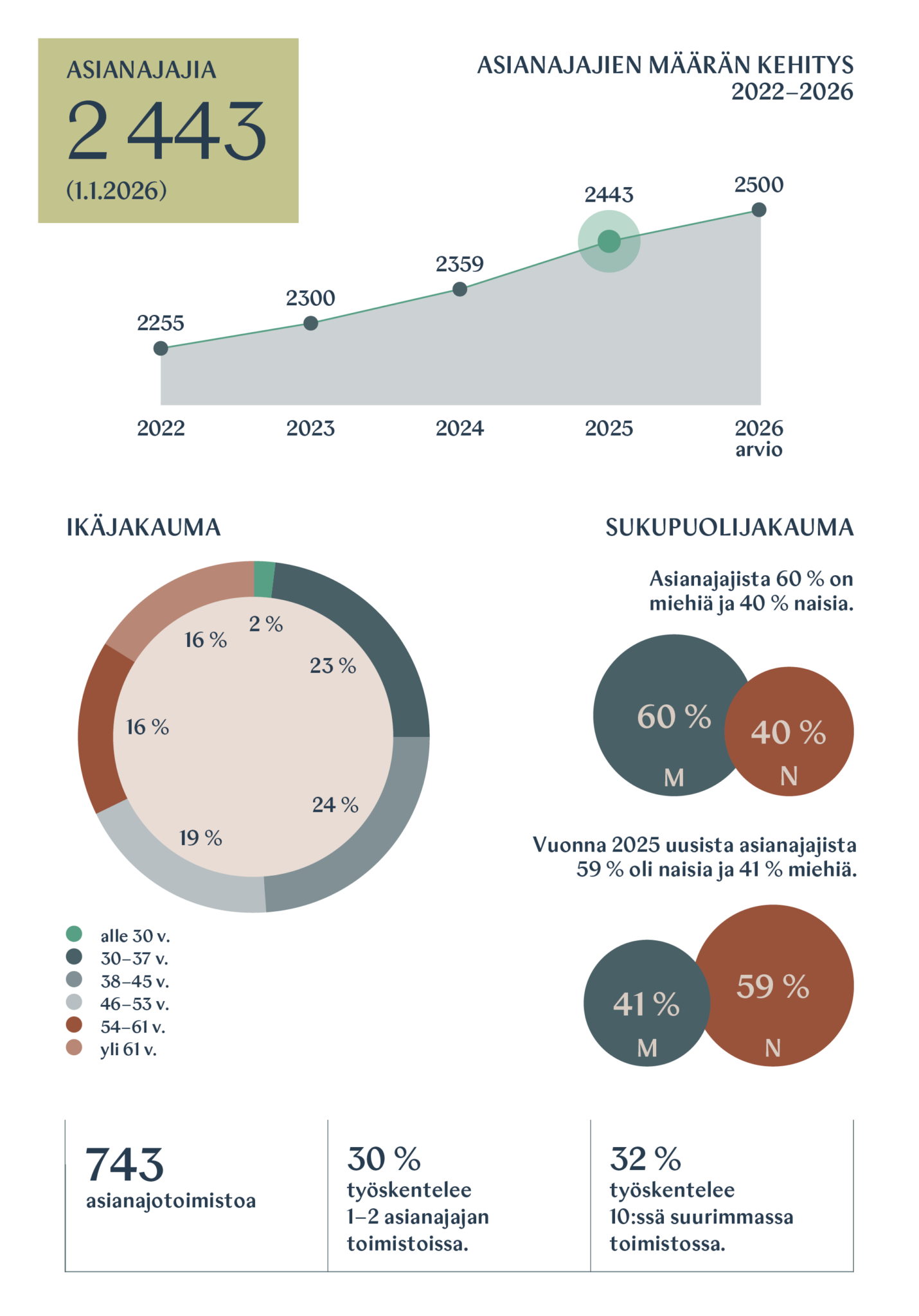 Asianajajaliiton sivuilta katsoin. Naisia on noin kolmasosa.